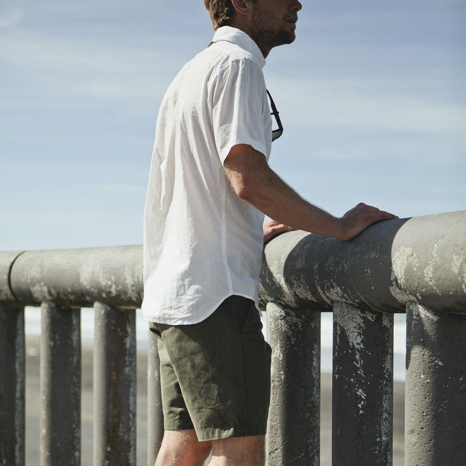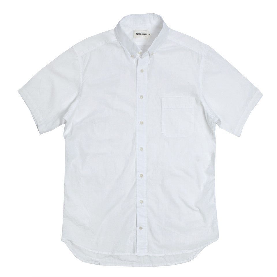 Our staple shirt has a tailored fit with a triple button collar. Now our oxford is available in short sleeves in White. Shop In-Stock now.