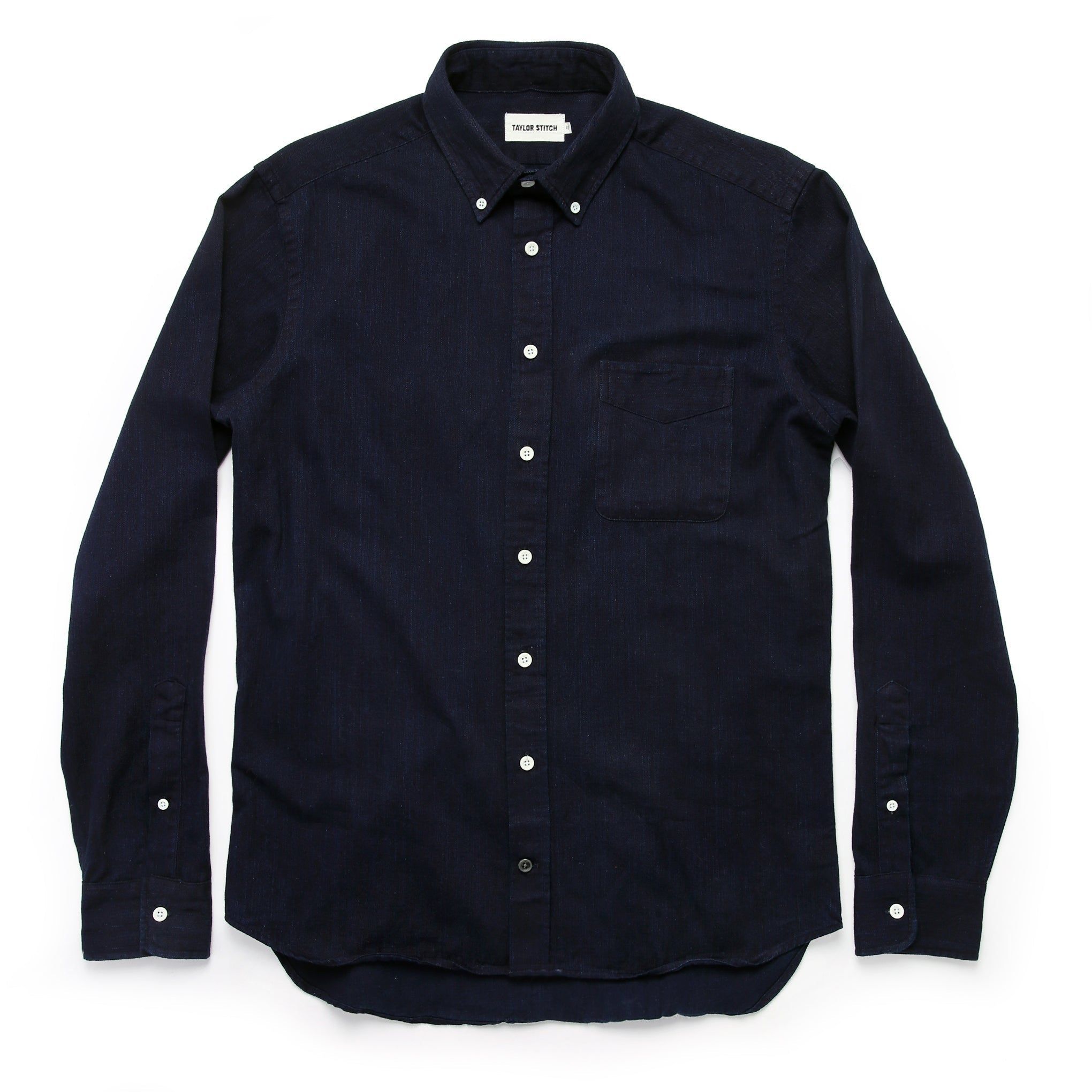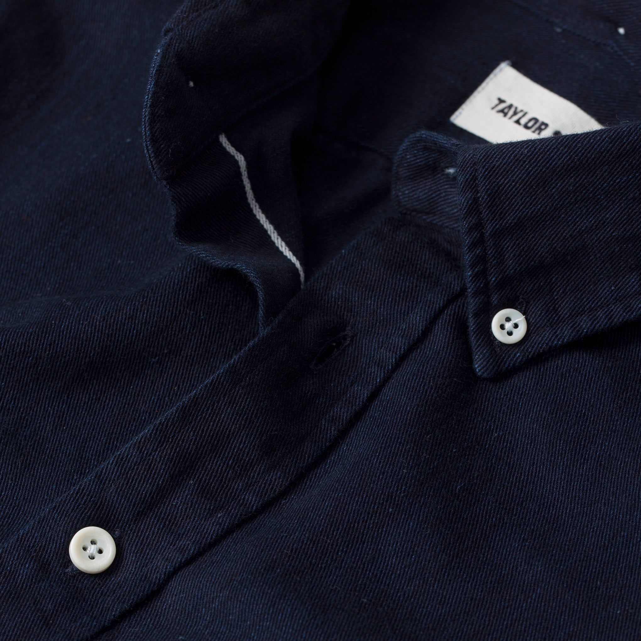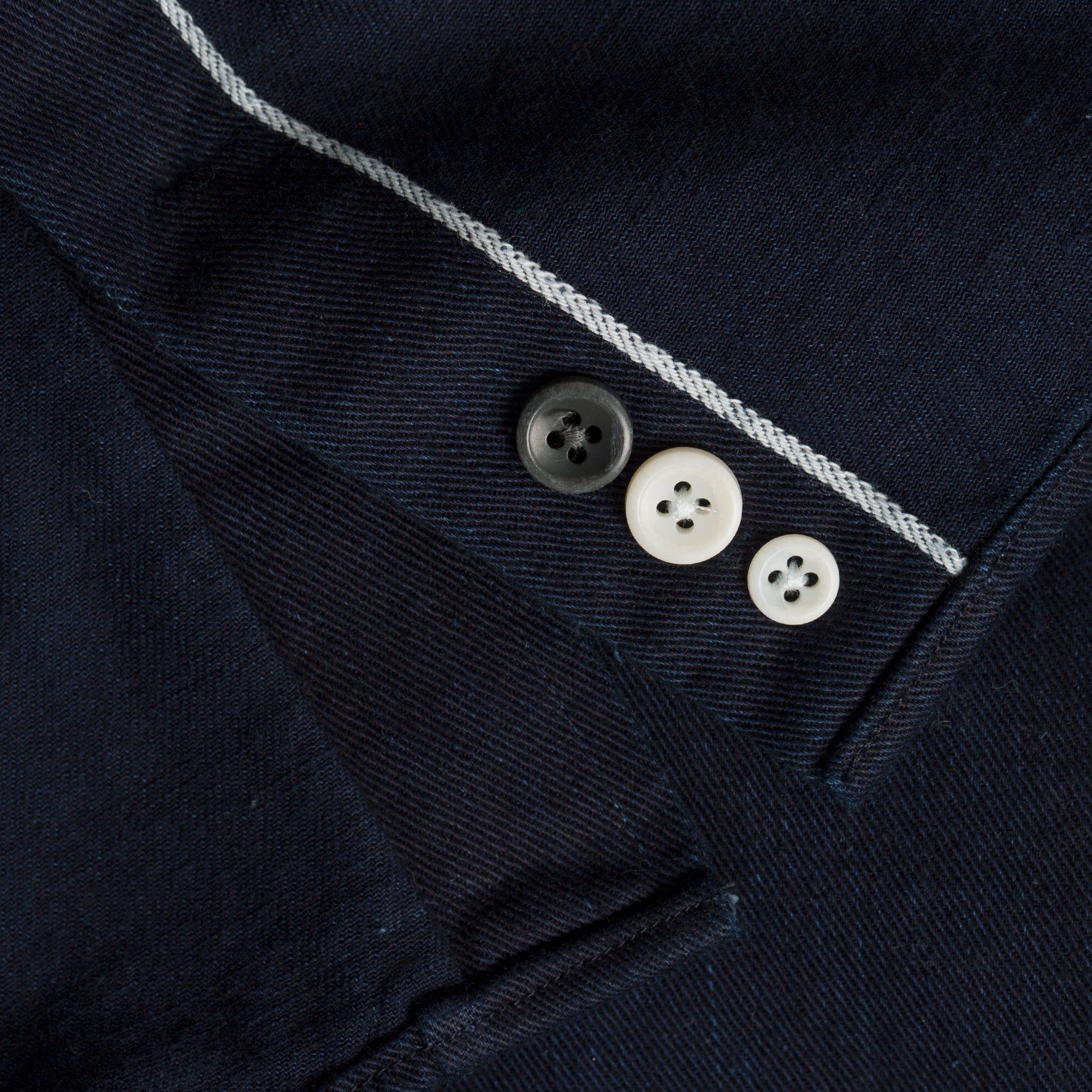- Selvage detailing on inside right placket and inside of cuffs.