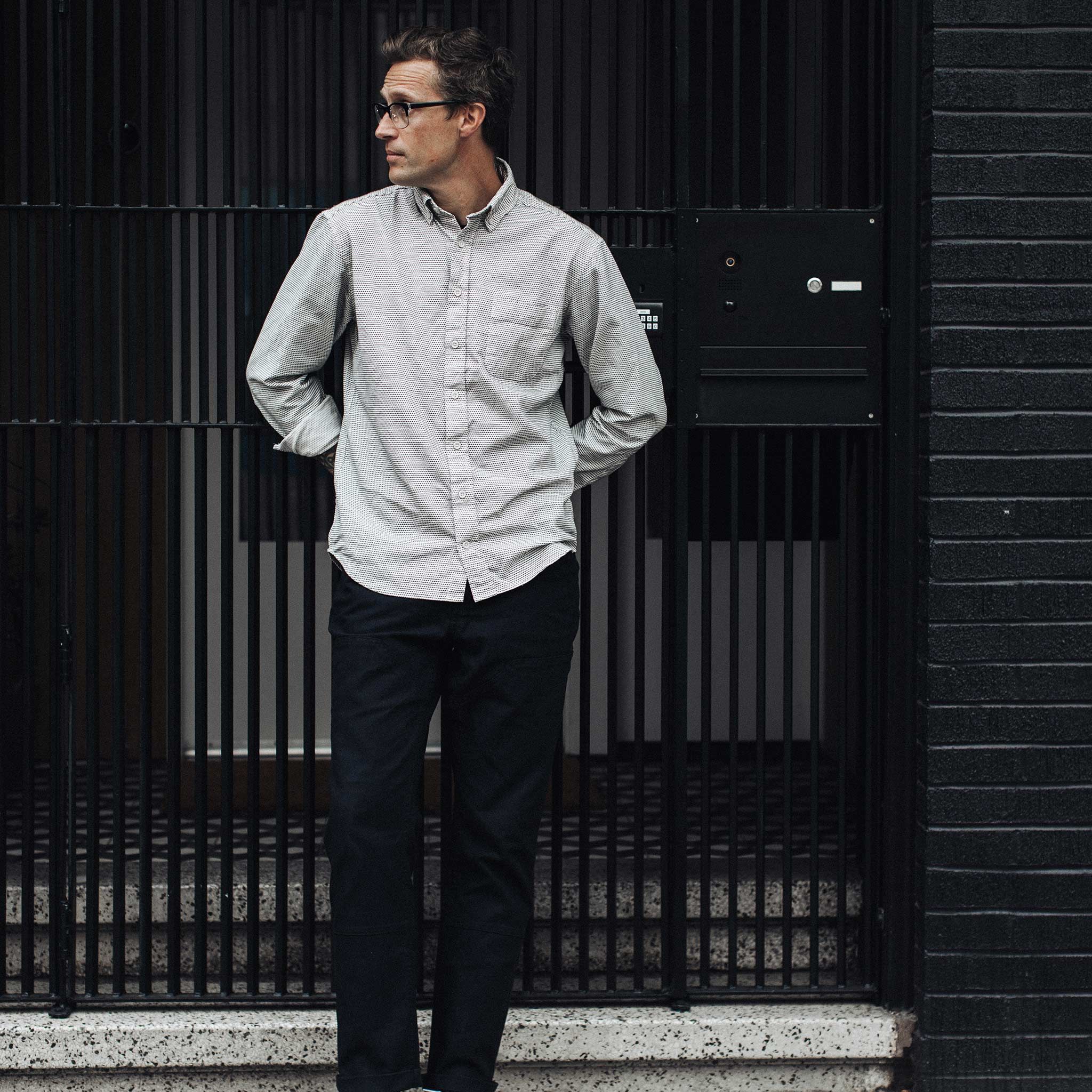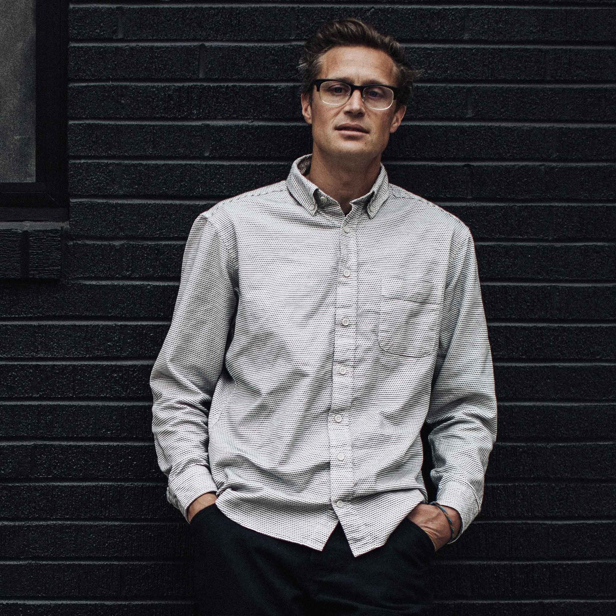 - Our signature Jack button down collar.