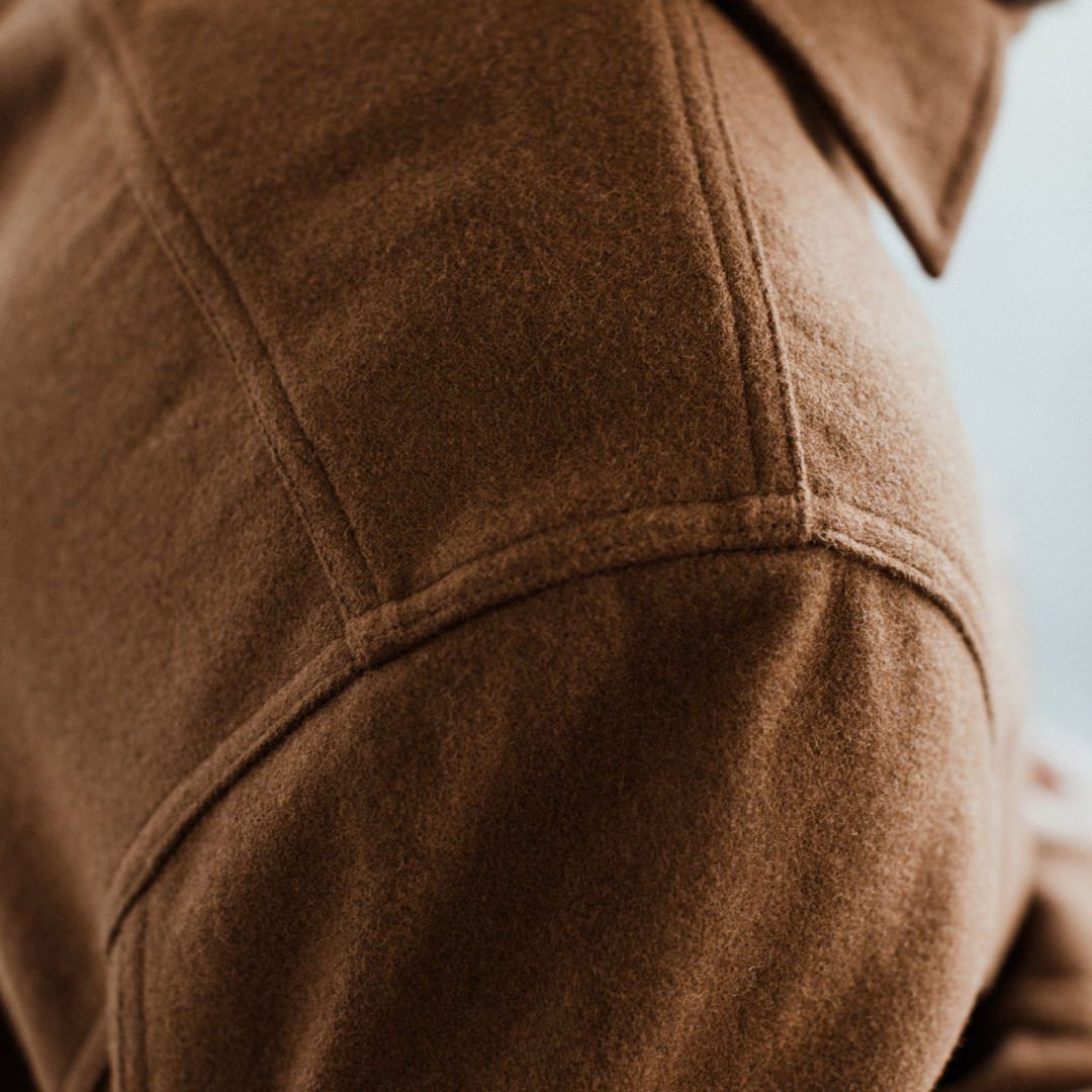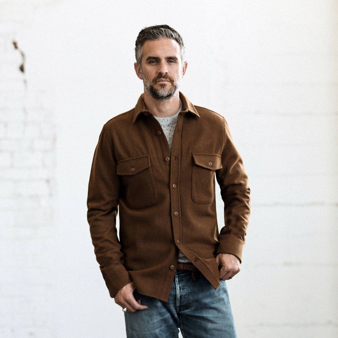Kill the chill while looking the part. The Maritime Shirt Jacket in Rust by Cuesv.