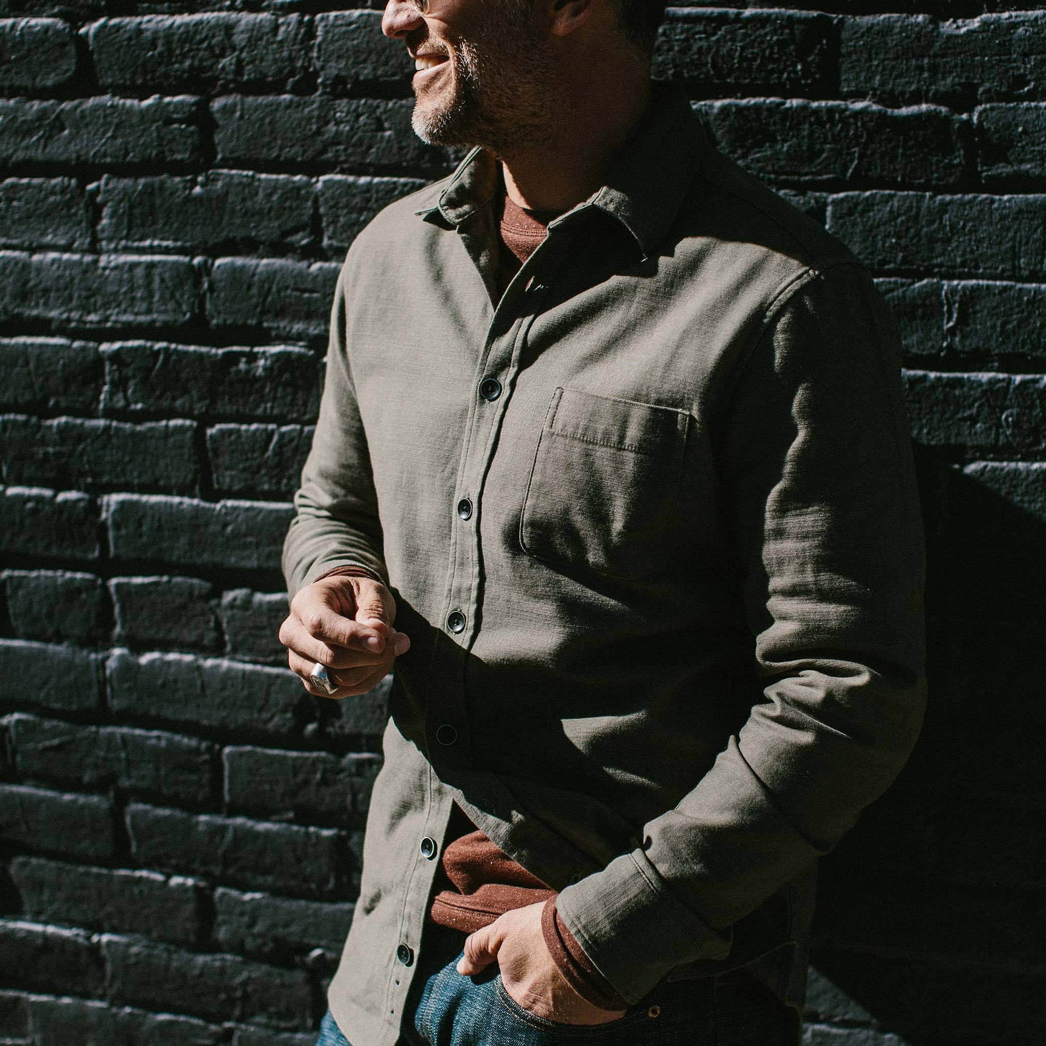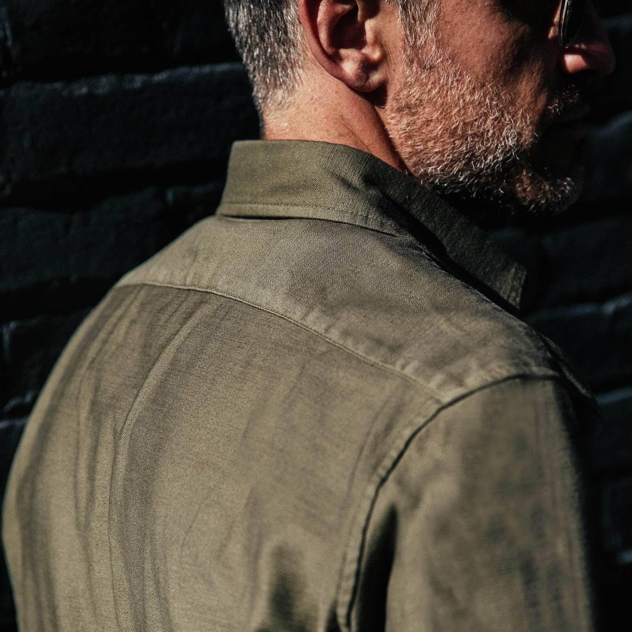 Cuesv Mechanic Shirt in Olive Reverse Sateen