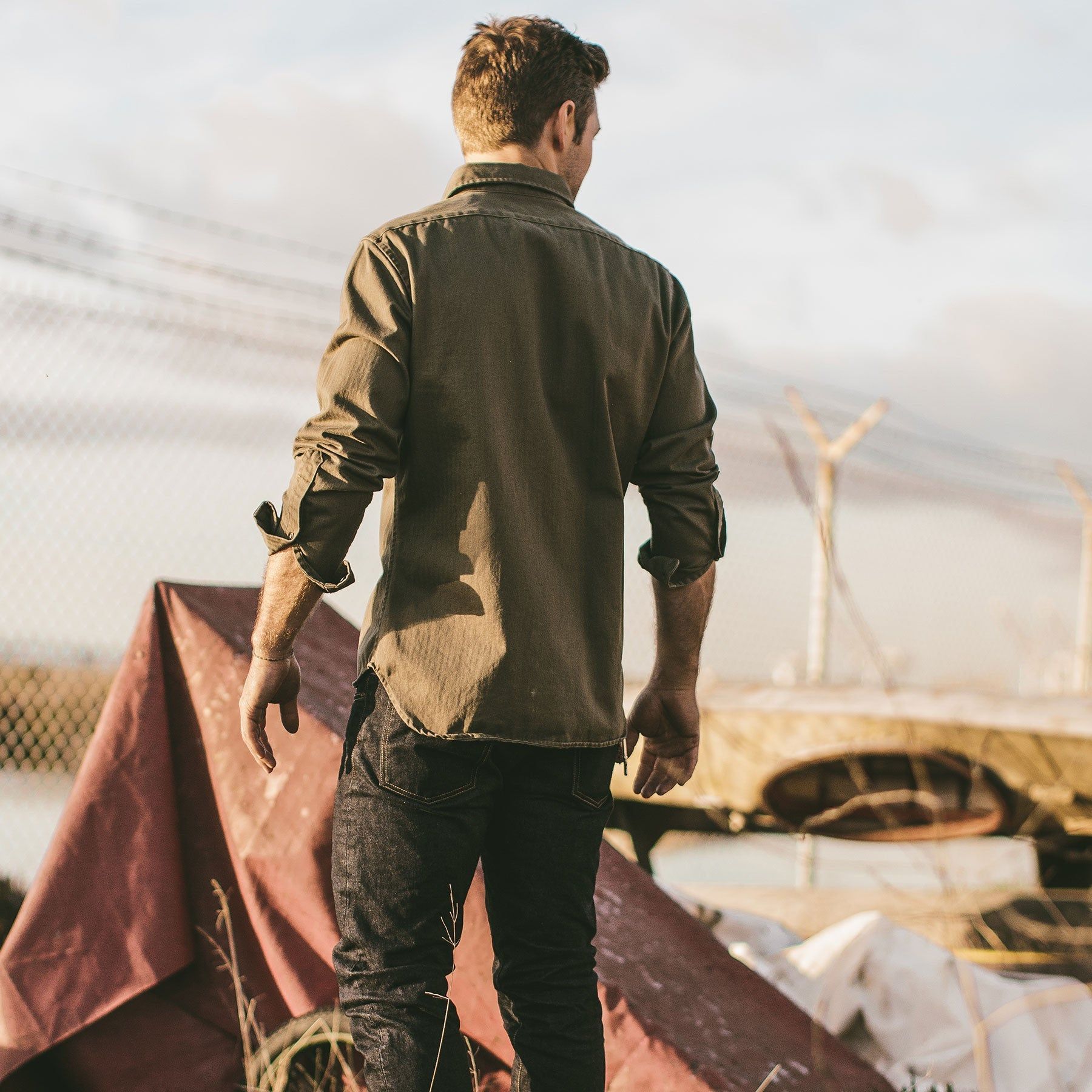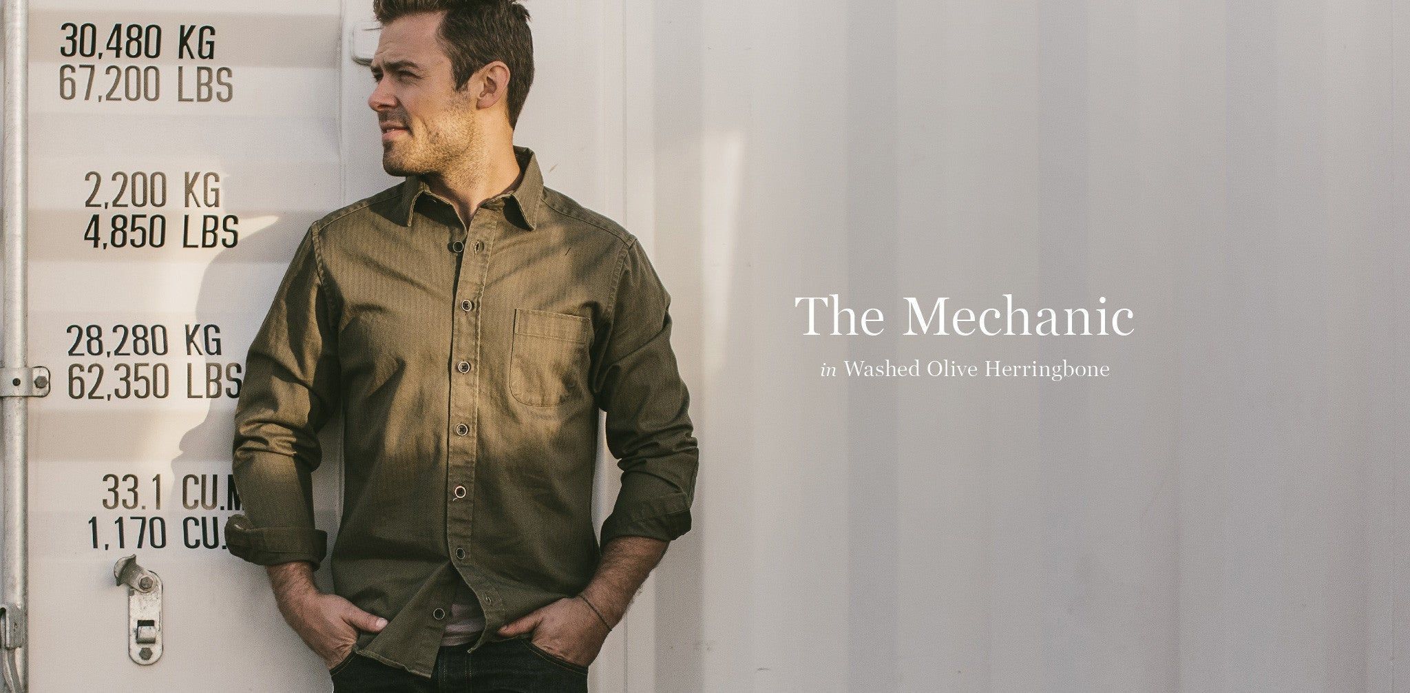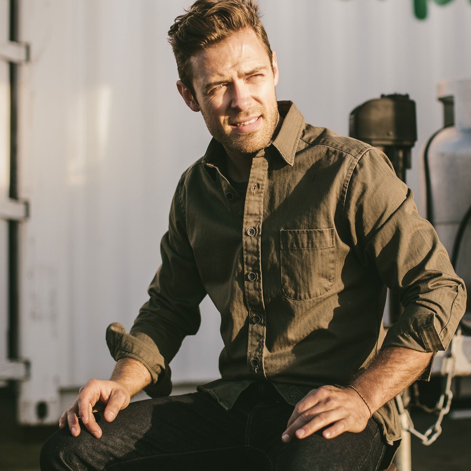 A clean-fronted, big-buttoned, hard-wearing shirt for when gas and grease beckon. Shop in Washed Olive.