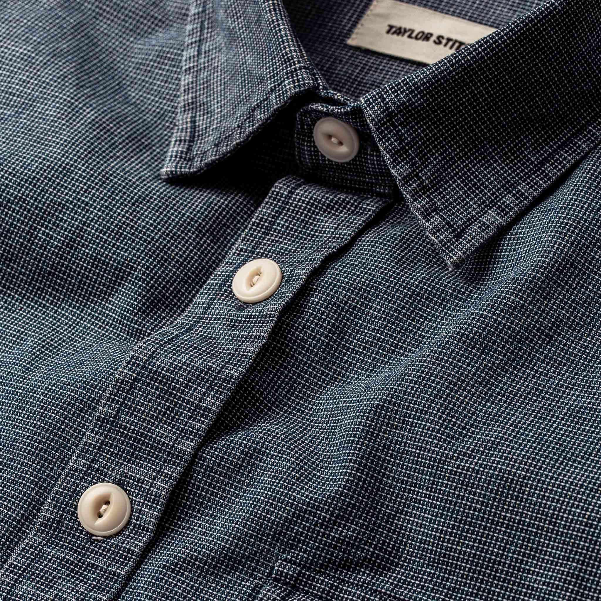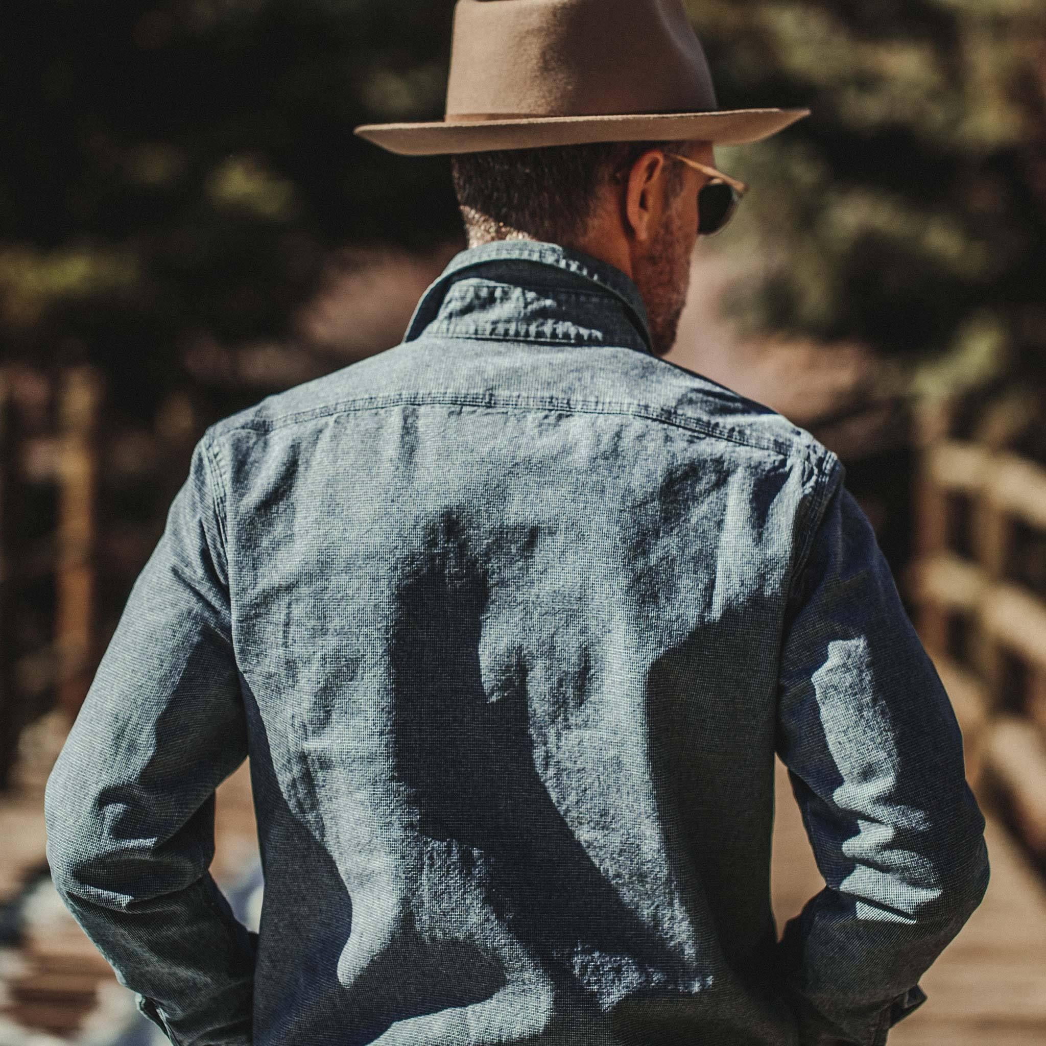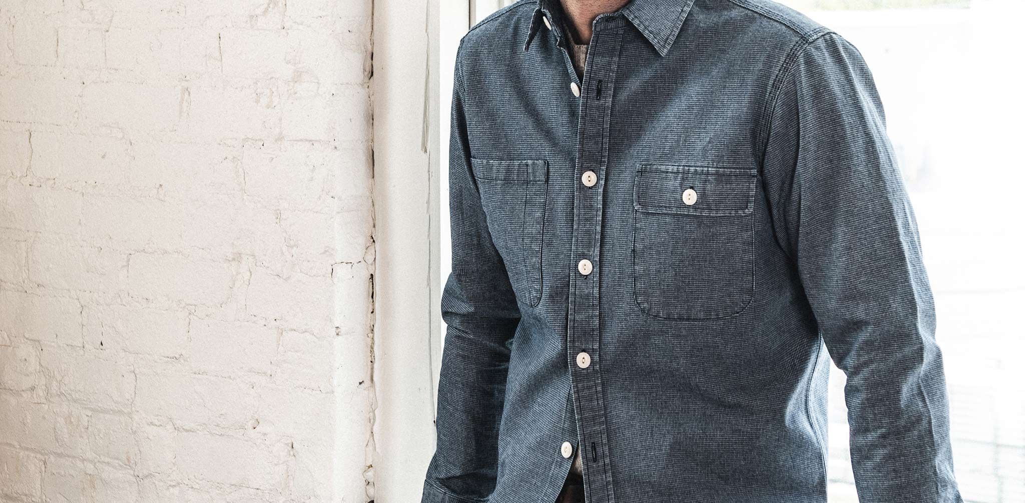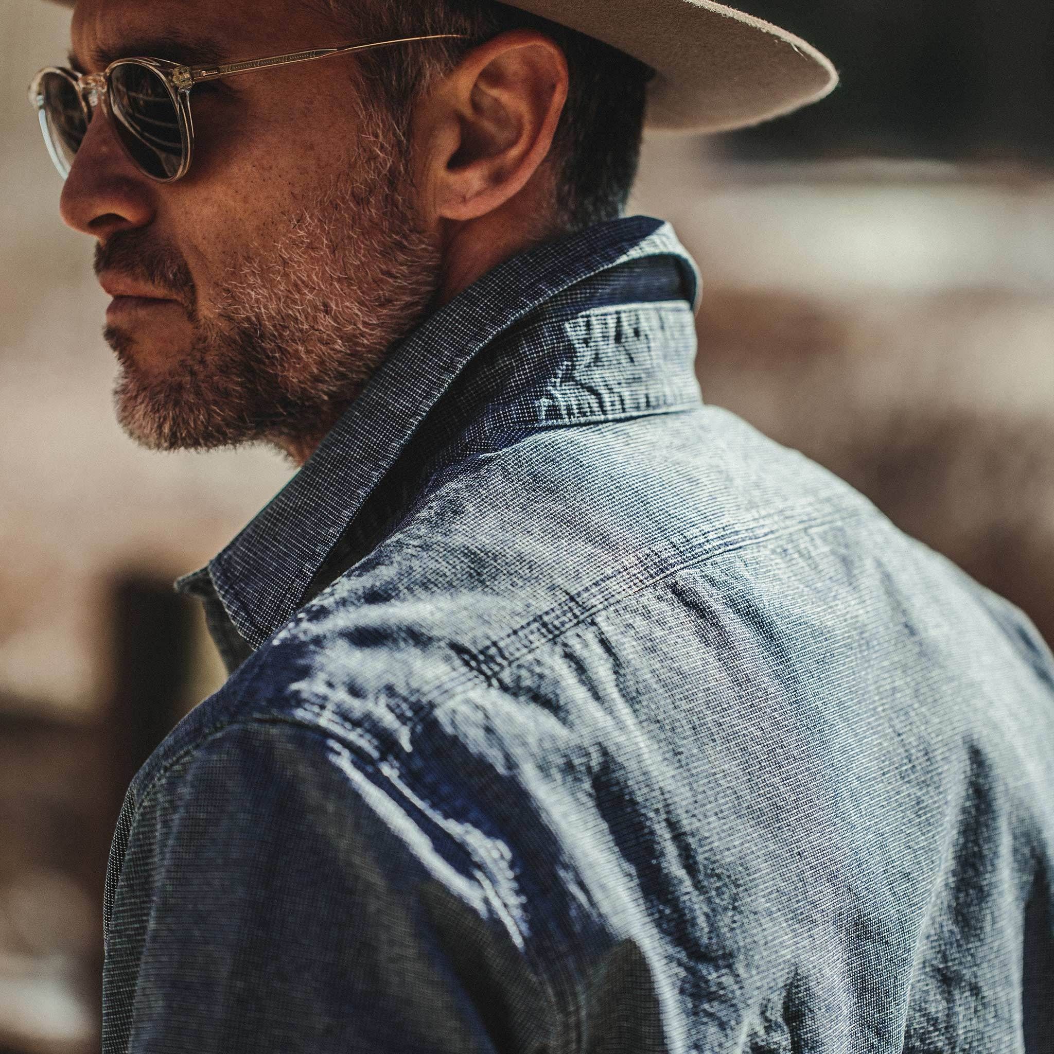 The Moto Utility Shirt in Indigo Pindot from Cuesv.