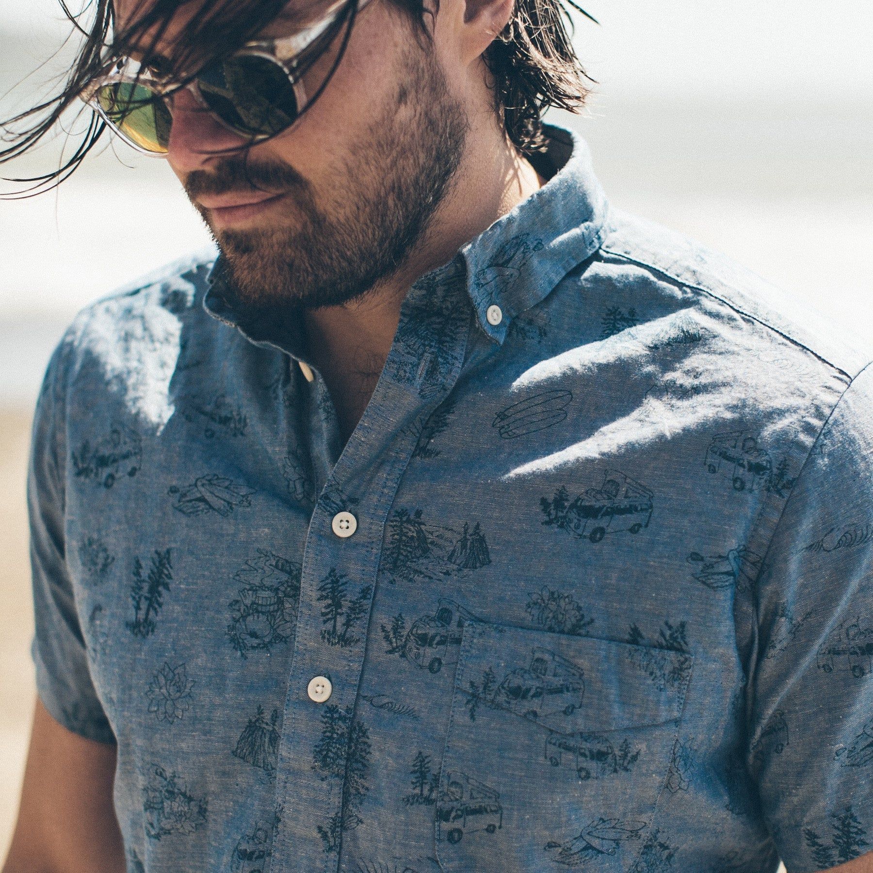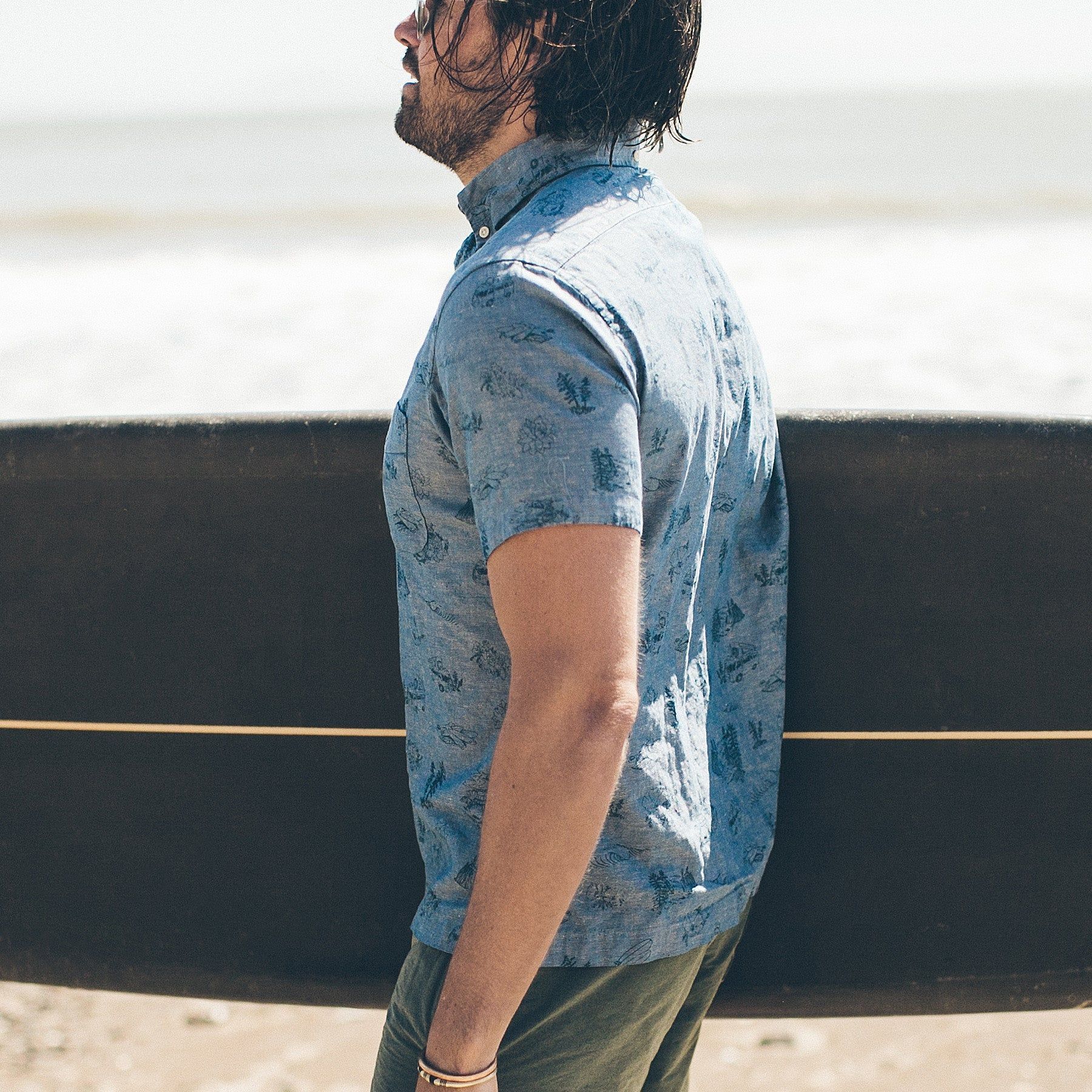 - 7-oz. Slubby Japanese Chambray, 85% Cotton & 15% Flax cotton.