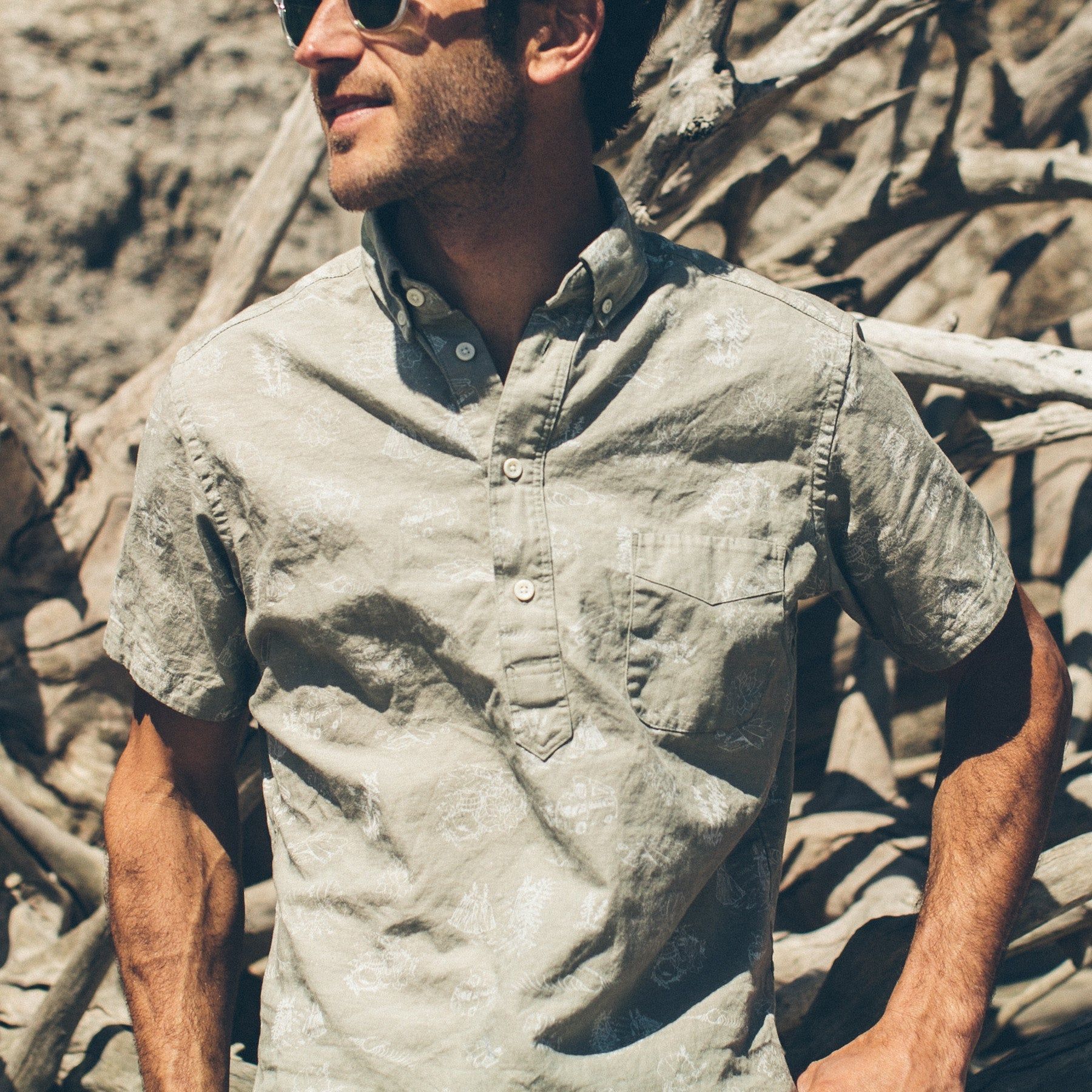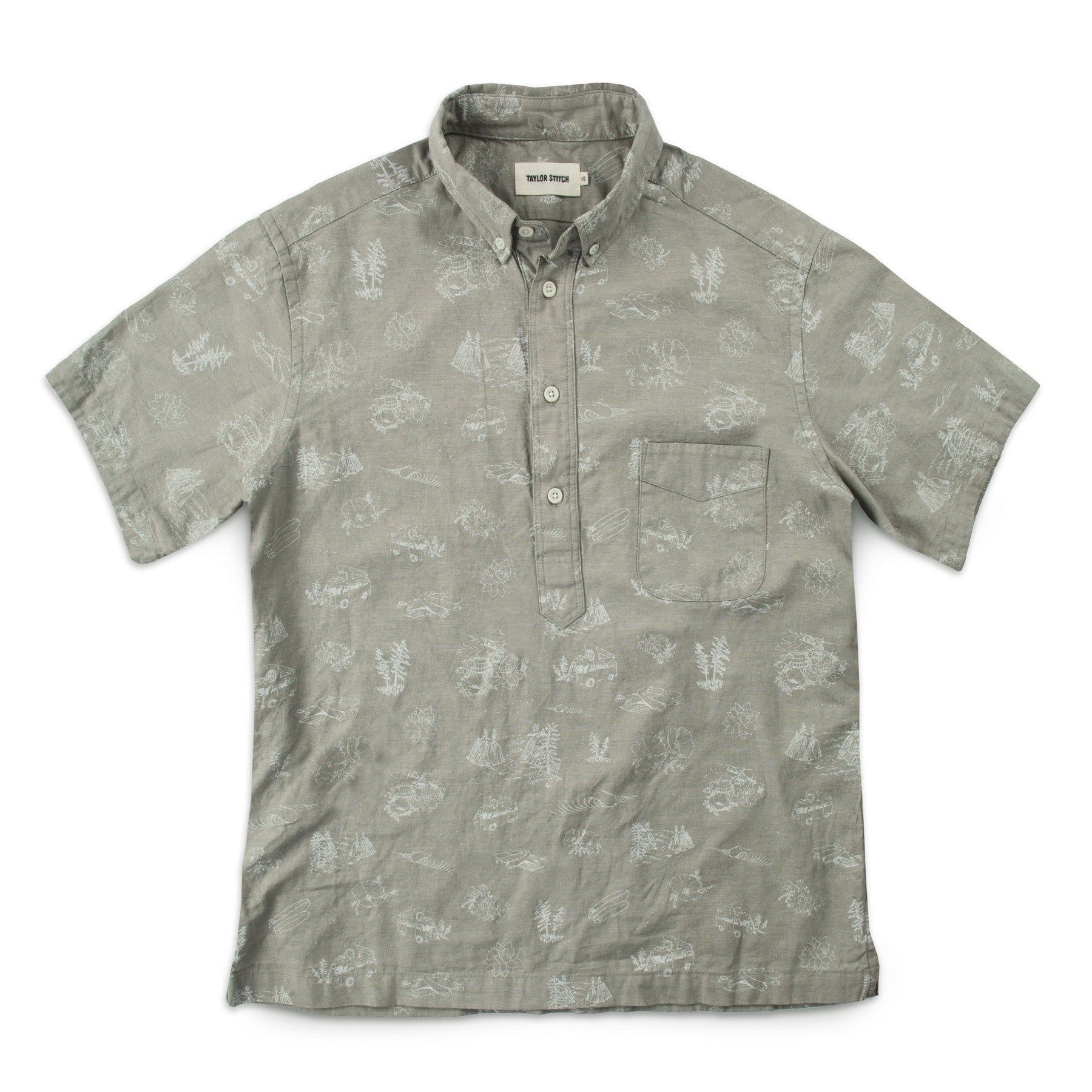 - Single rounded chest pocket.
