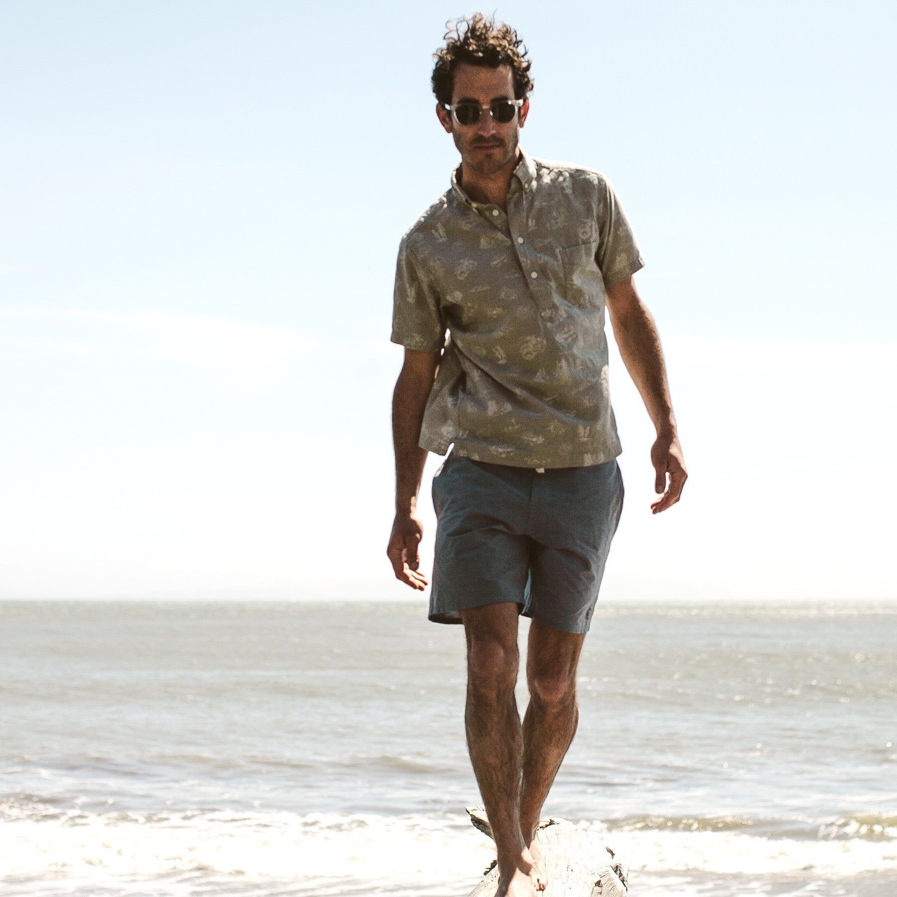 - Soft button down collar.