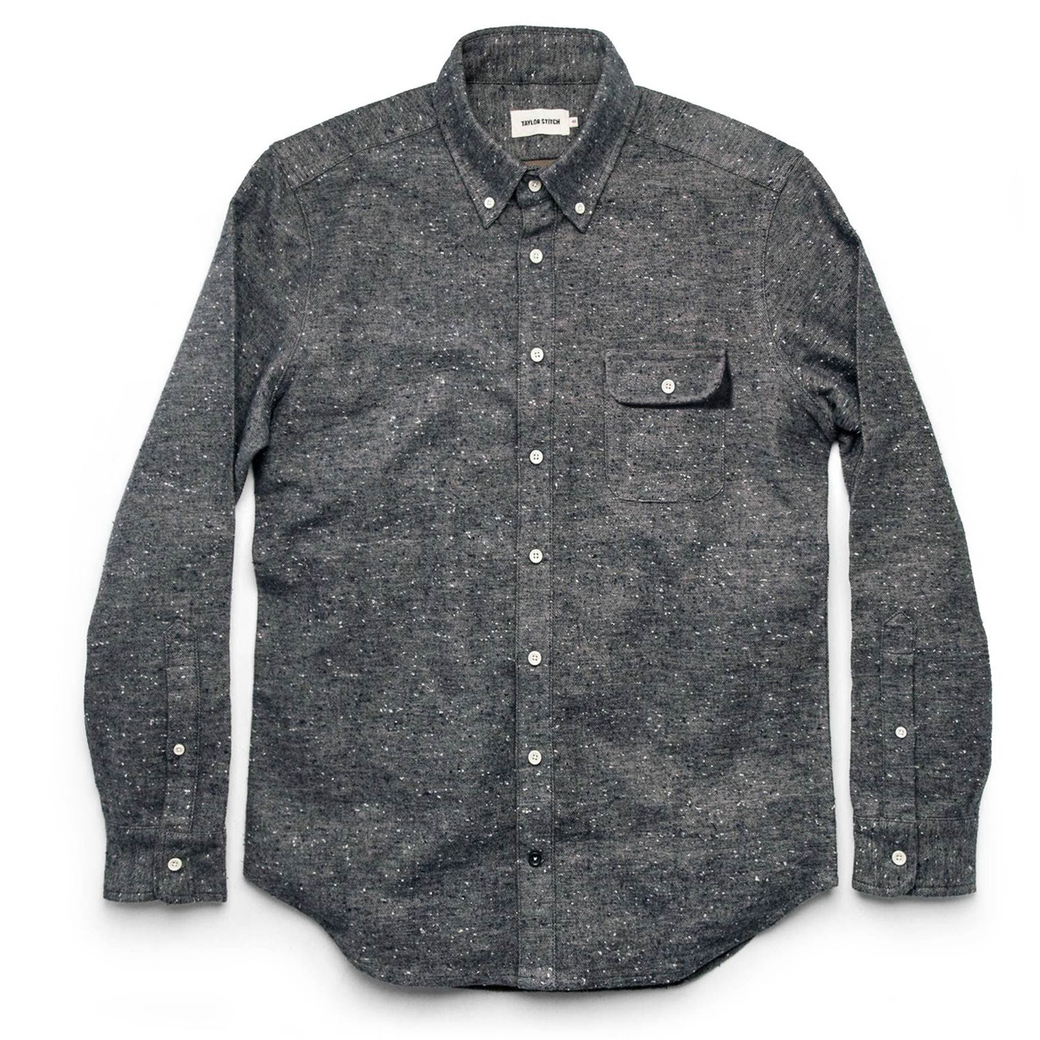 - Single rounded chest pocket with button-through flap.