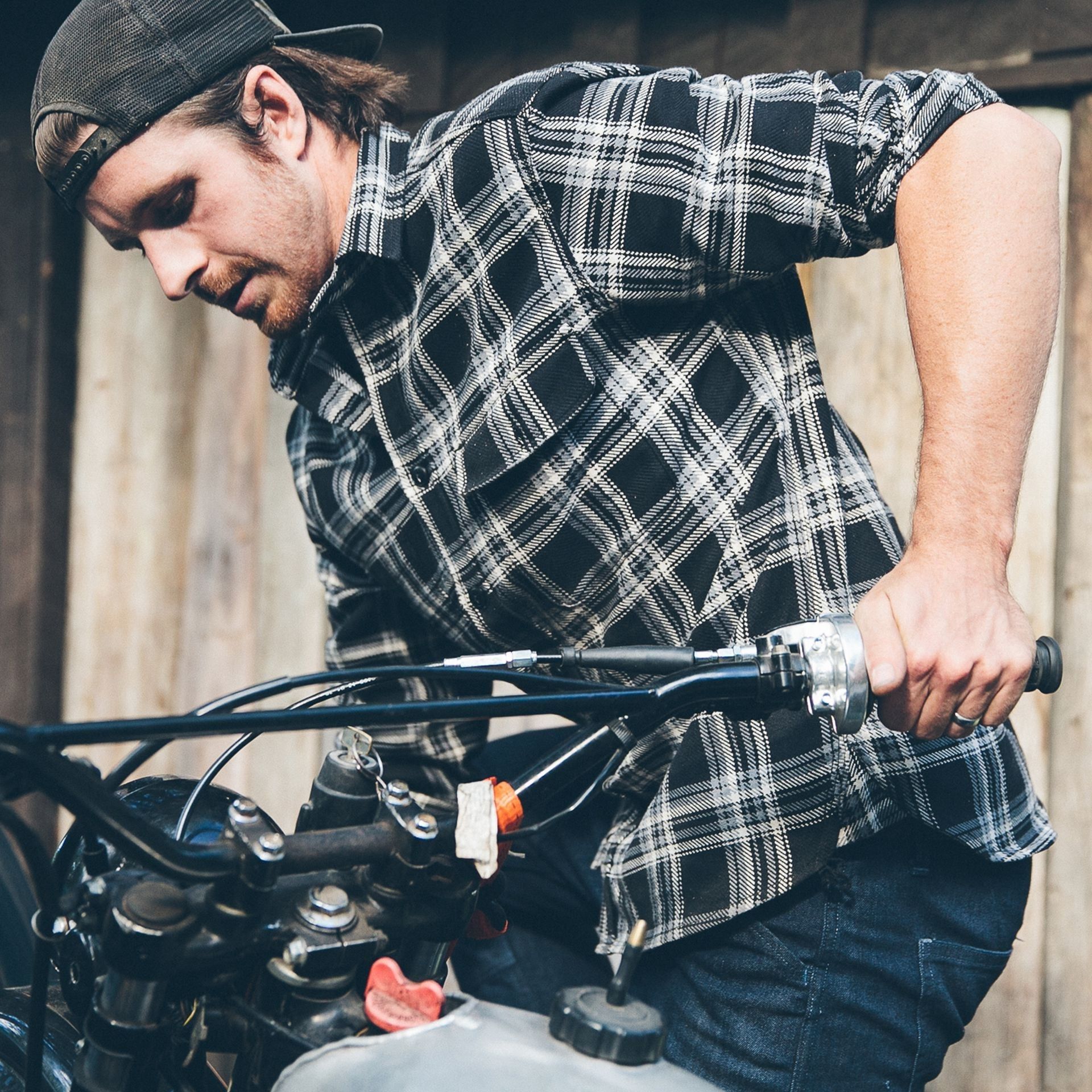 Cuesv Triple Needle Moto Utility Shirt in Black