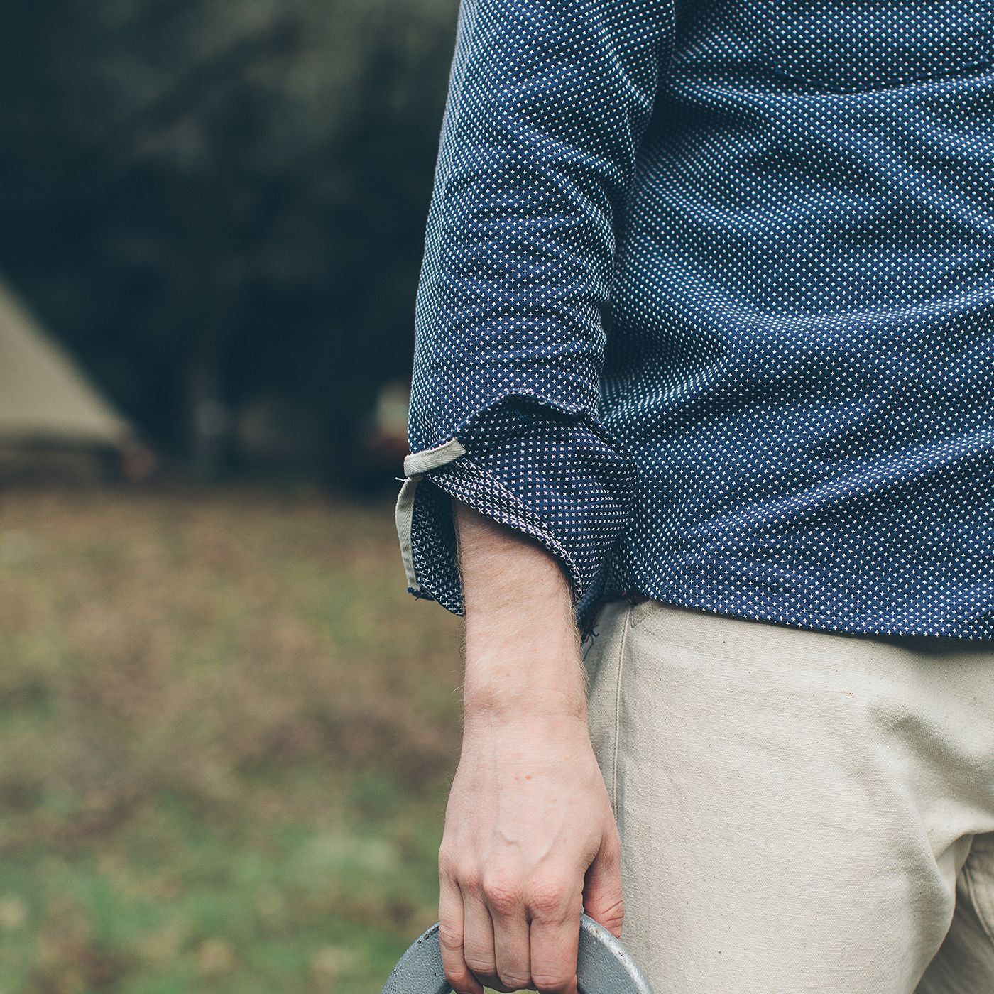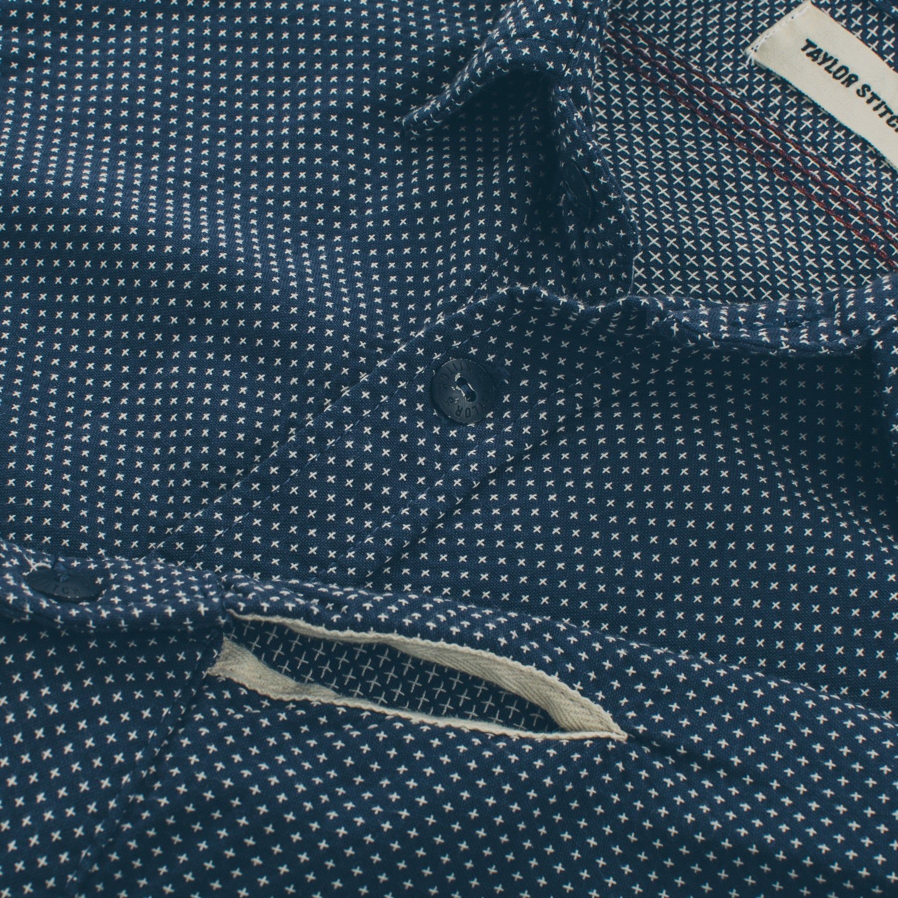 Constructed from cross jacuard, its got the bones of your grandfather's burly work shirt, with a modern tailored finish. Limited in Indigo.