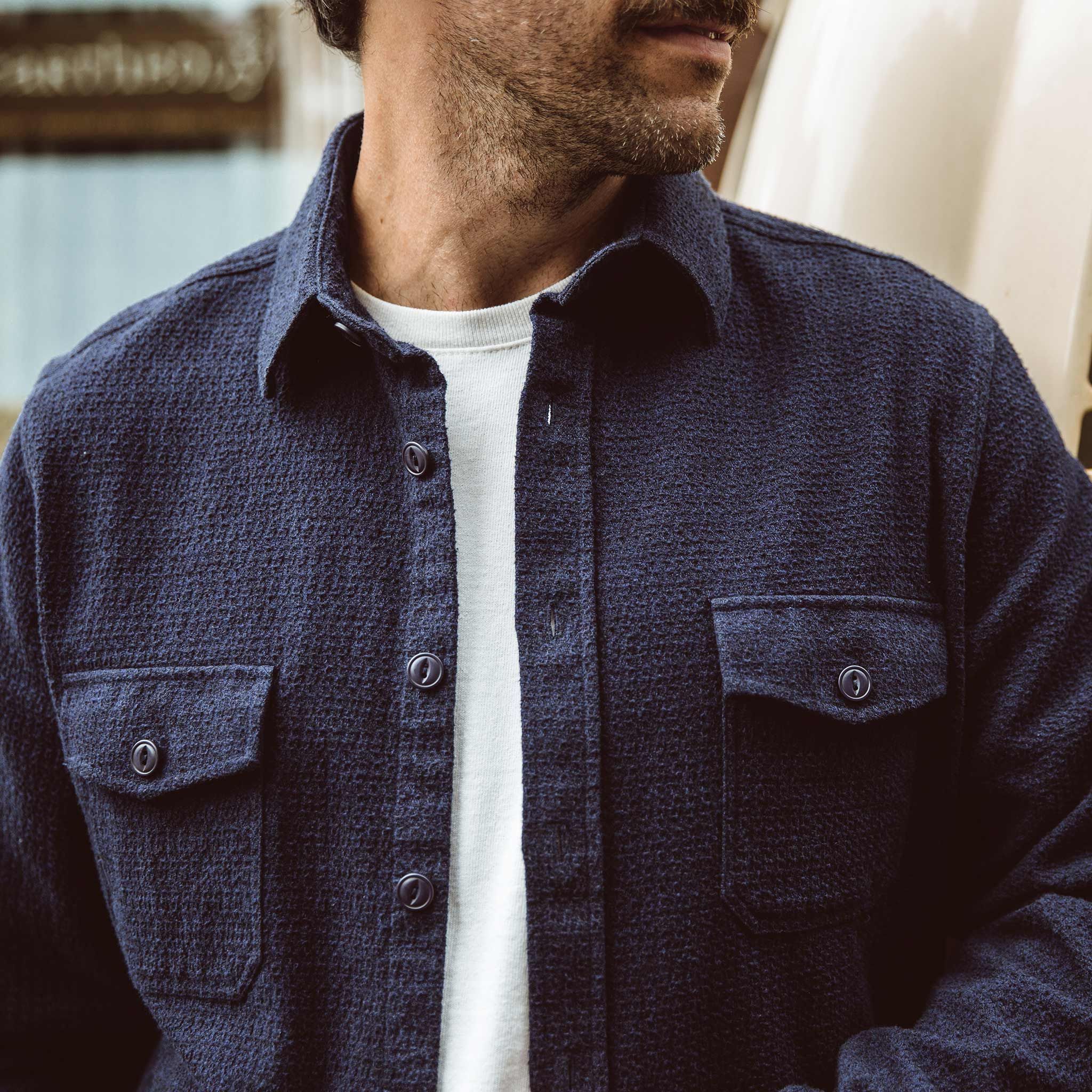 Fall weather clothing is all about versatility—a shirt should work just as well as a stand alone as it does in a layered ensemble. After all, that’s the definition of utility. With its subtle yet stylistic jacquard weave and earthy tones, our Utility Shirt is made for seasonal transitions.