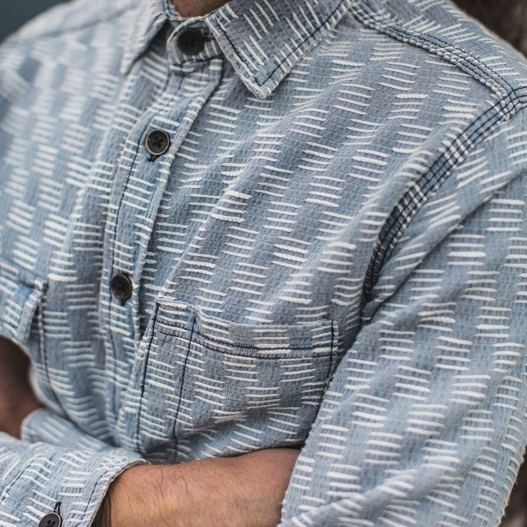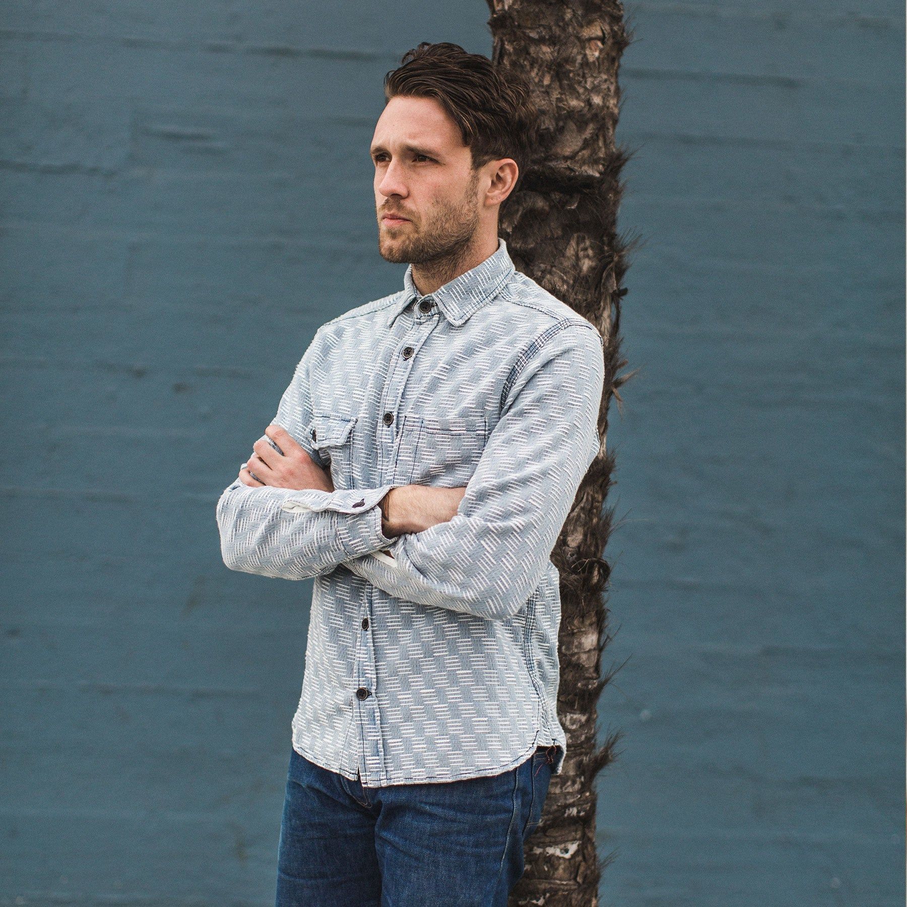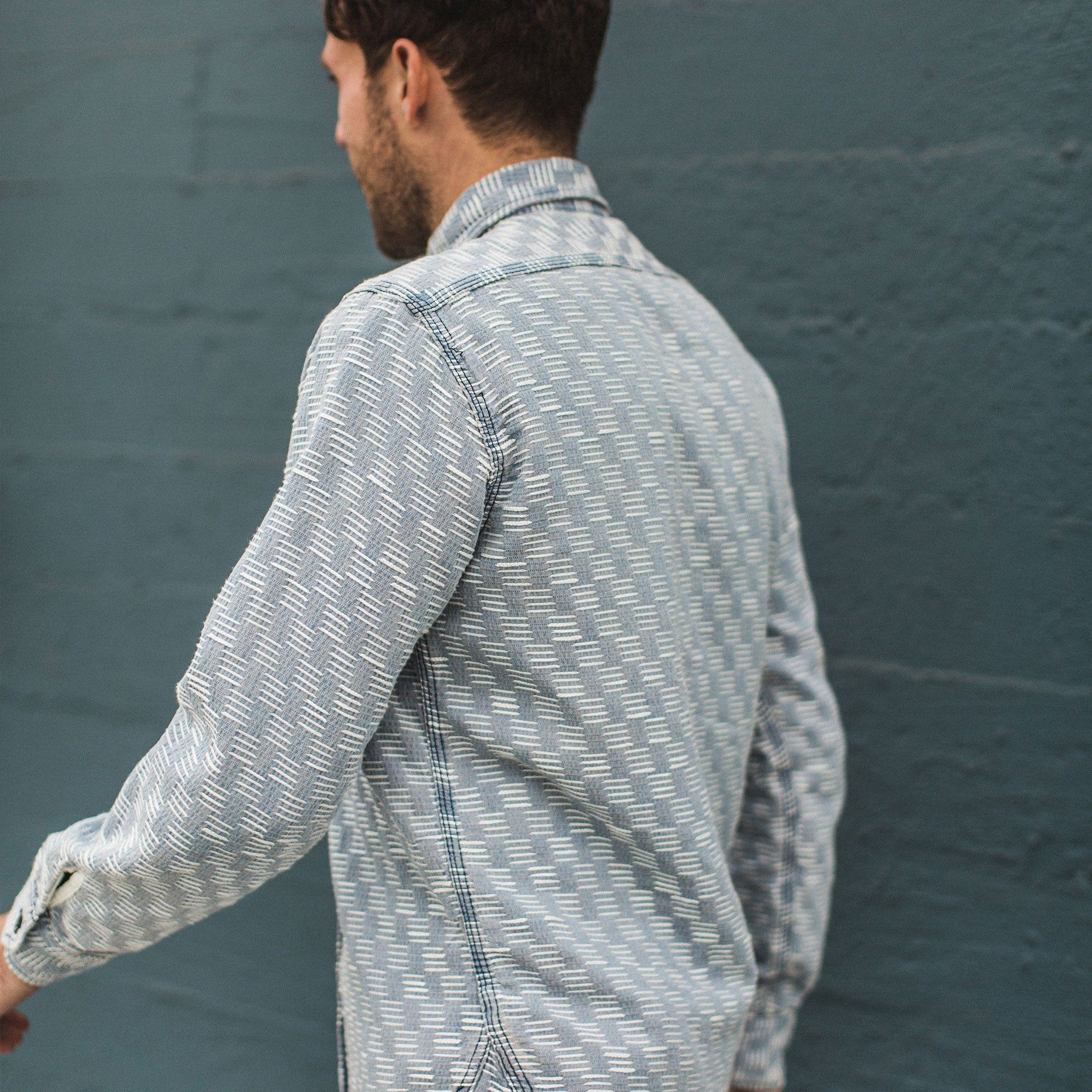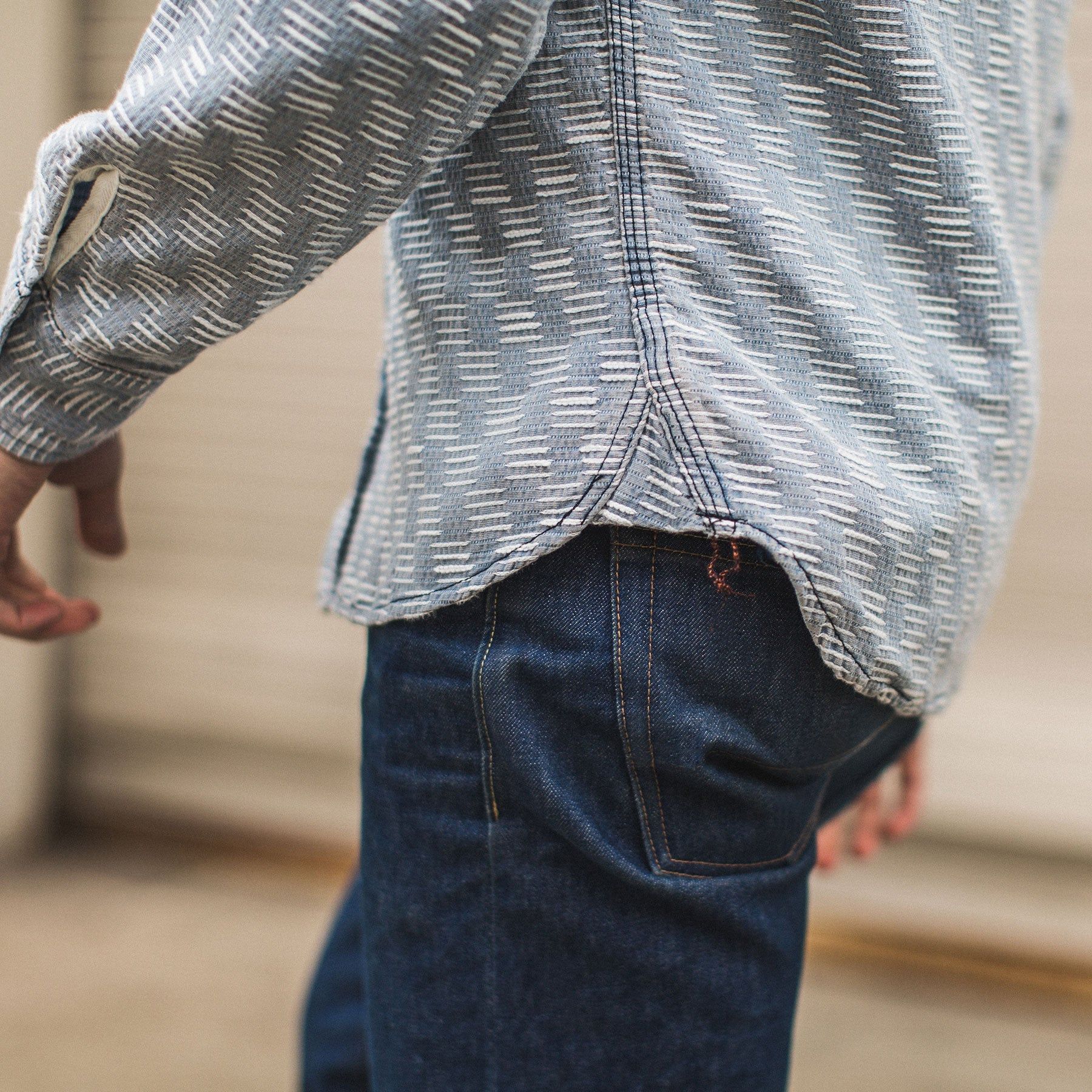 Cuesv Utility Shirt in Washed Indigo Jacquard