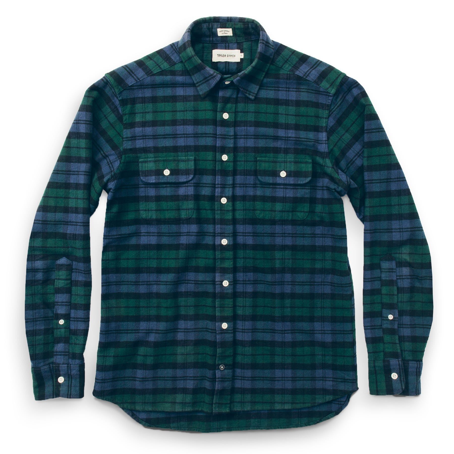 The perfect men's outdoor shirt that was a multi-year effort. Made out of thick, puppy-soft Portuguese chamois. Shop In-Stock in Blackwatch Plaid.