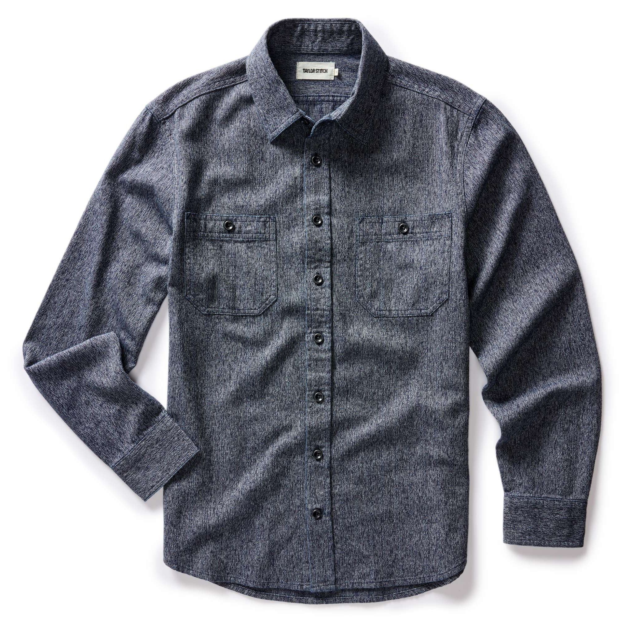The Utility Shirt in Rinsed Indigo Herringbone from Cuesv