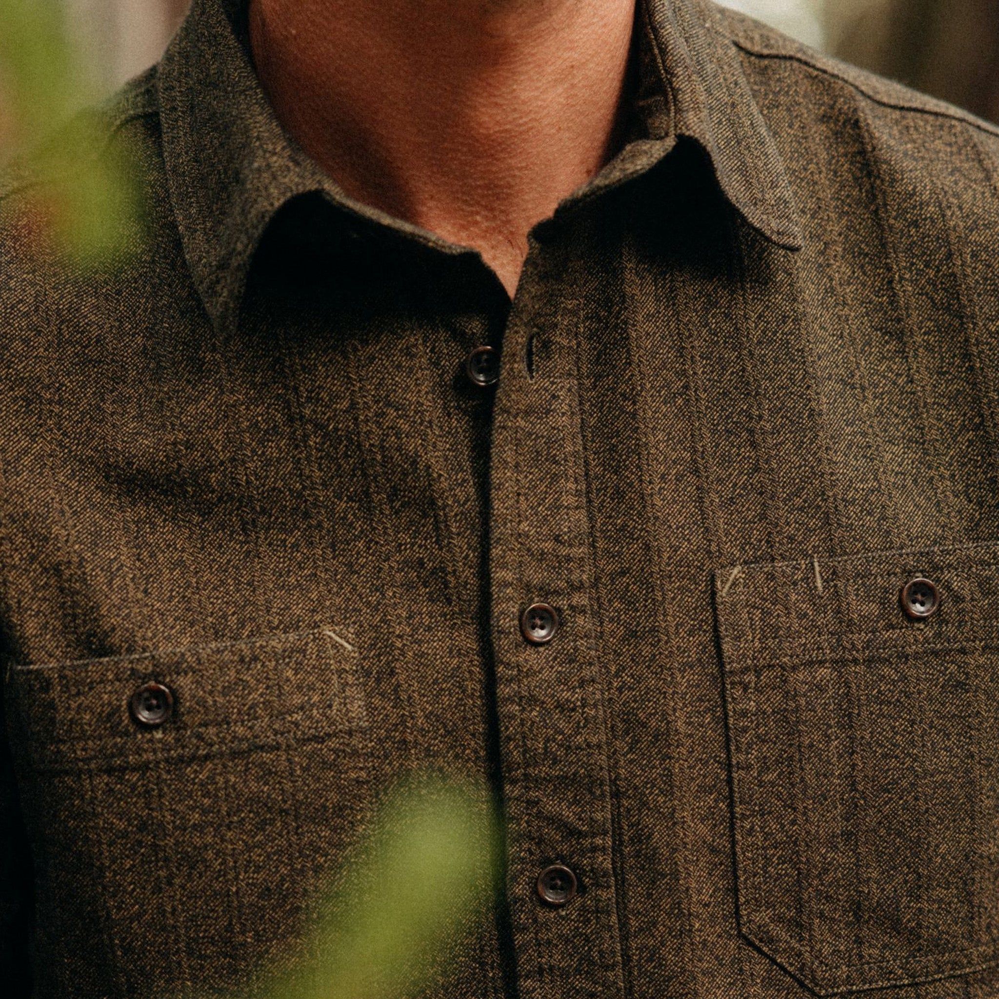 The Utility Shirt in Tarnished Brass Herringbone from Cuesv